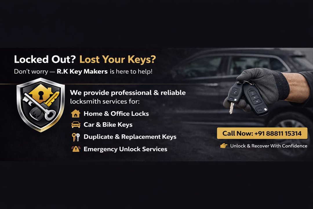 From Locksmith Bangalore 'We are a Locksmith Company in Bangalore. We have 15 years of industry experience in Door Unlock, Car Unlock, Car Key Replacement, Car Key Programming, Safe Unlock, Car Key Duplication, Safe Key Replacement, Door Lock Change, Master Key System Installation and Home Keys Duplication.'